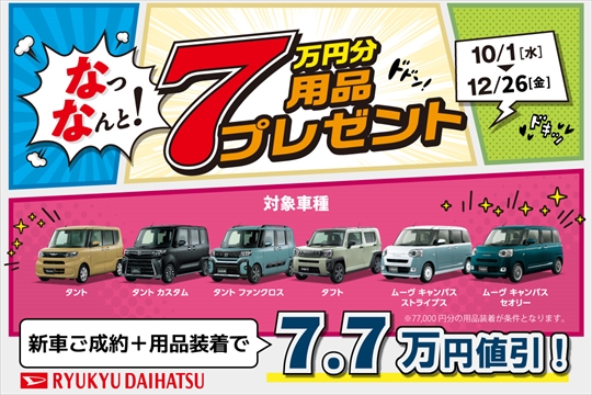 琉球ダイハツ 用品7万円プレゼントキャンペーン実施中!2025年12月31日まで!