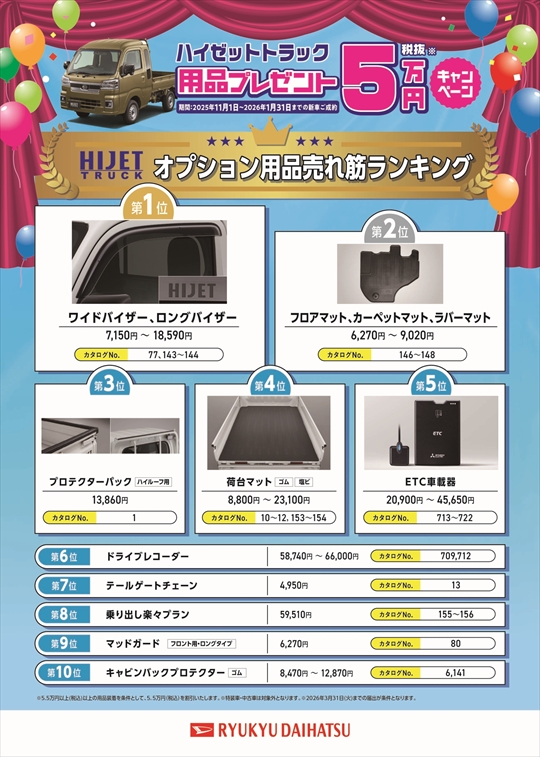 琉球ダイハツ ハイゼットカーゴ、ハイゼットトラックの用品プレゼントキャンペーン!